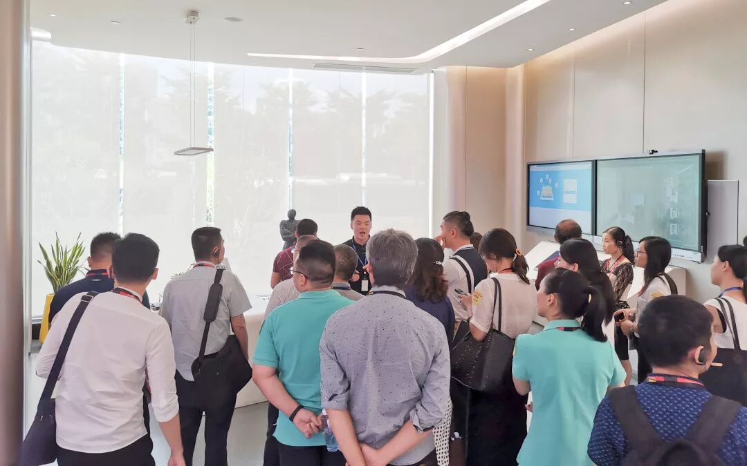 本次参访活动分为企业参观和分享交流两个部分进行。在CVTE工作人员的带领下,大家开始深入CVTE内部“探索”:考究的展厅、高端的设备、先进的技术等等,无一不让人眼前一亮。