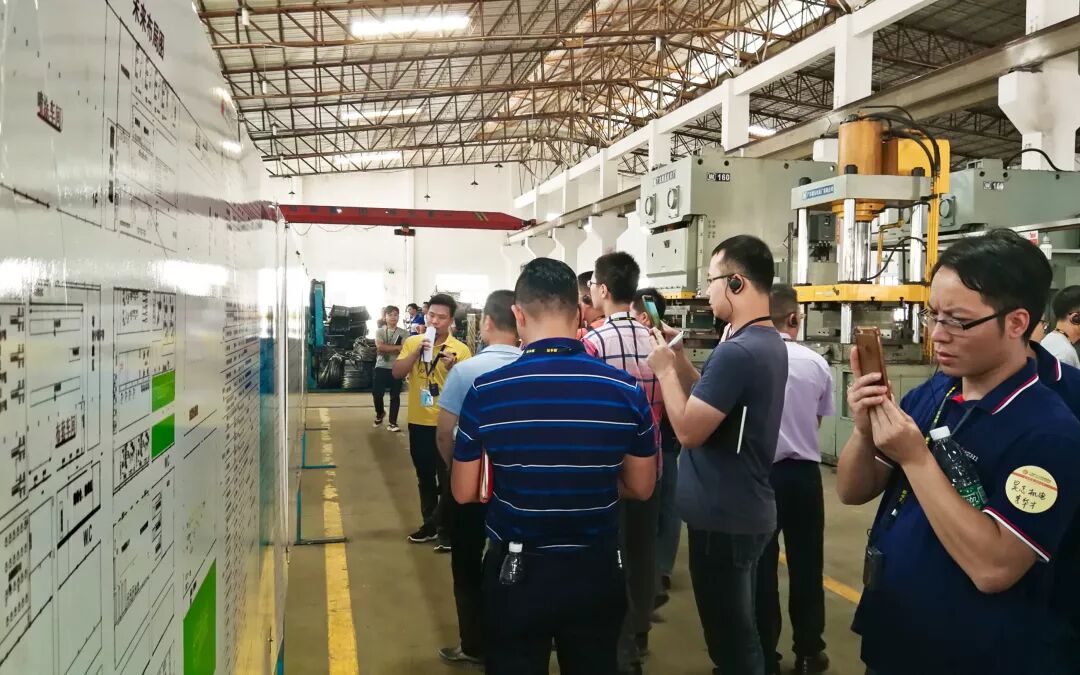 在伟经集团工作人员的带领下,大家近距离看到伟经的生产方式,包括包装车间单元工作台的应用、总装车间精益线的全面推广、黑胚车间连续流模式变革、LCIA简便自动化的引入等等,现场互动交流,收获匪浅。