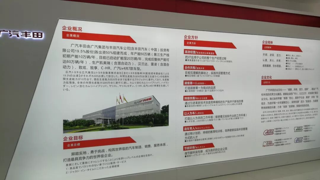 本次在现场参观包括冲压车间、焊装车间、总装车间,车间忙碌而有序地进行生产,各类车型混合生产,配送车穿插于各工位,员工各司其职,有条不紊地完成整车的装配。所有的一切都在不停地流动,完美地展现了丰田管理的艺术。