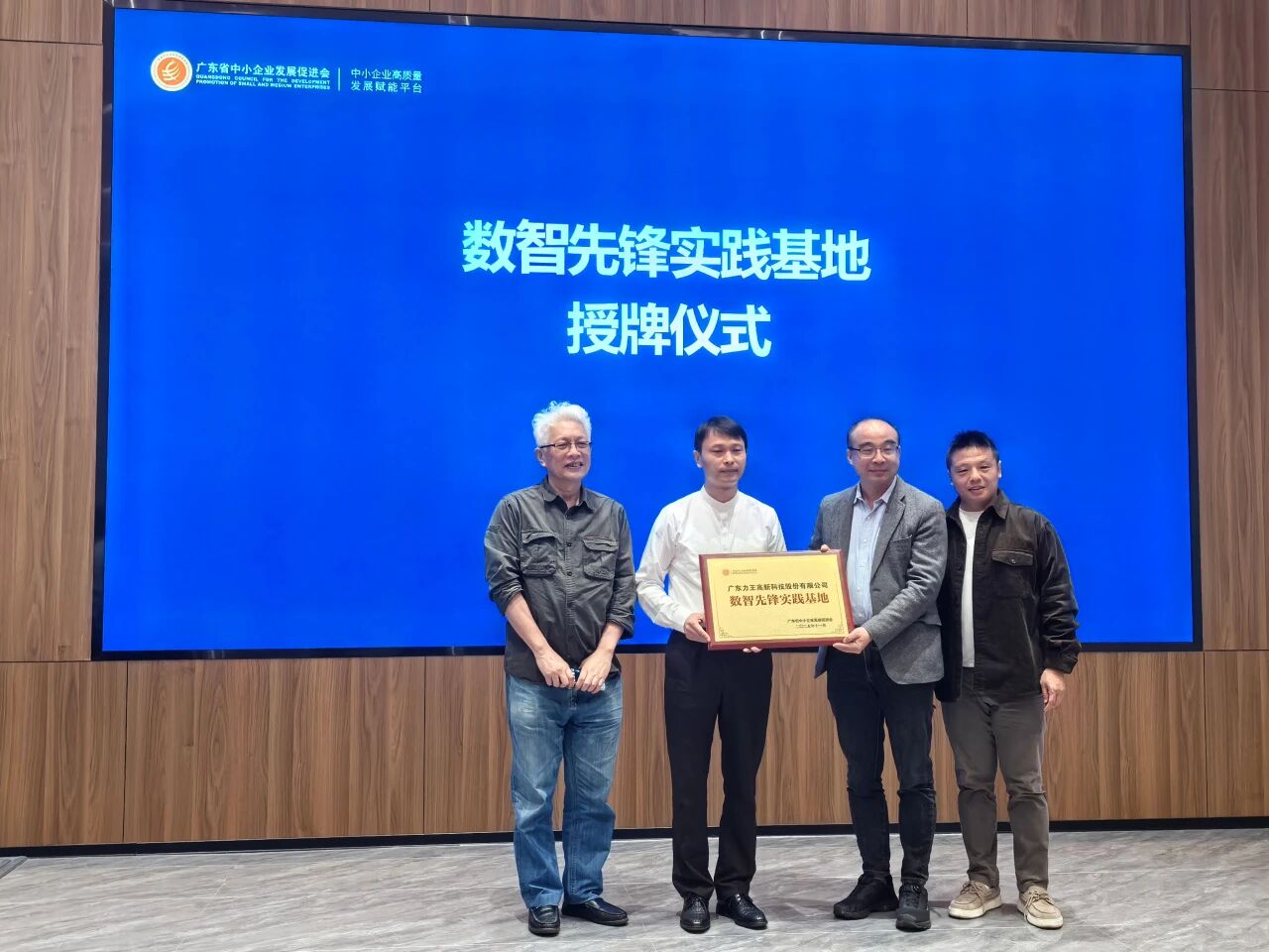 力王高科的转型实践为中小制造企业提供了可参考的转型样本,是省促进会服务企业落地全数字化工厂的广东首家标杆企业。活动现场谢会长为力王高科授予“数智先锋实践基地”荣誉牌匾,表彰力王高科在数字化和人工智能方面的积极探索和努力践行。
