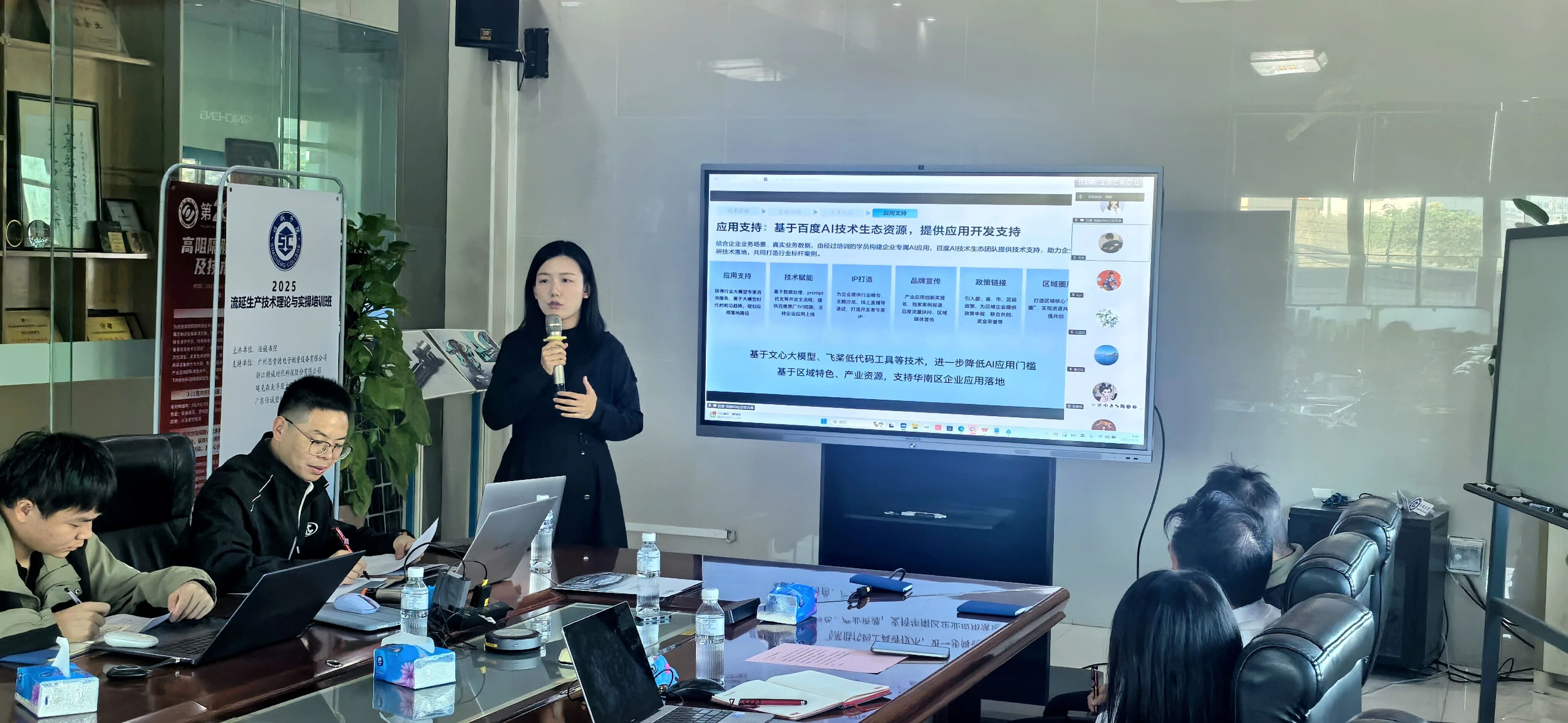 在当天的启动会上,仕诚机械总经理秦志红立足行业趋势与公司战略全局,深刻阐述了布局AI创新实验室项目的战略意义。她表示,此举是公司顺应人工智能技术浪潮、实现数字化转型的关键布局,将在智能质检、流程优化等领域推动效率突破,助力企业在市场竞争中占据优势。副董事长应陈晖则号召全体成员以“时不我待”的紧迫感,主动拥抱AI技术革命,将AI技术深度融入业务流程与核心战略,以此驱动未来增长,推动企业迈向伟大。 百度AI技术生态华南企业运营负责人郑越详细介绍了AI创新实验室具体实施规划,并分享了AI赋能企业的成功案例。AI创新实验室通过“AI技术咨询、企业内训、人才认证、应用支持”四步走,系统构建企业AI应用能力,真正实现员工成长与企业增效的良性循环。 百度AI技术生态华南企业运营负责人郑越 在现场嘉宾和员工代表共同见证下,省促进会副秘书长谢楷然代表项目组,正式授予仕诚机械“AI创新实验室”牌匾,标志着仕诚AI创新实验室项目全面进入实质性推进阶段。 接下来,仕诚机械将以AI创新实验室为引擎,持续探索人工智能在产业场景的创新应用,为行业智能化升级助力。省促进会也将继续发挥桥梁与纽带作用,推动AI创新实验室在更多中小企业中落地生根,并携手百度等生态合作伙伴,共同构建一个开放、协同、可持续的中小企业AI赋能生态,助力广东制造业乃至全国中小企业高质量发展。