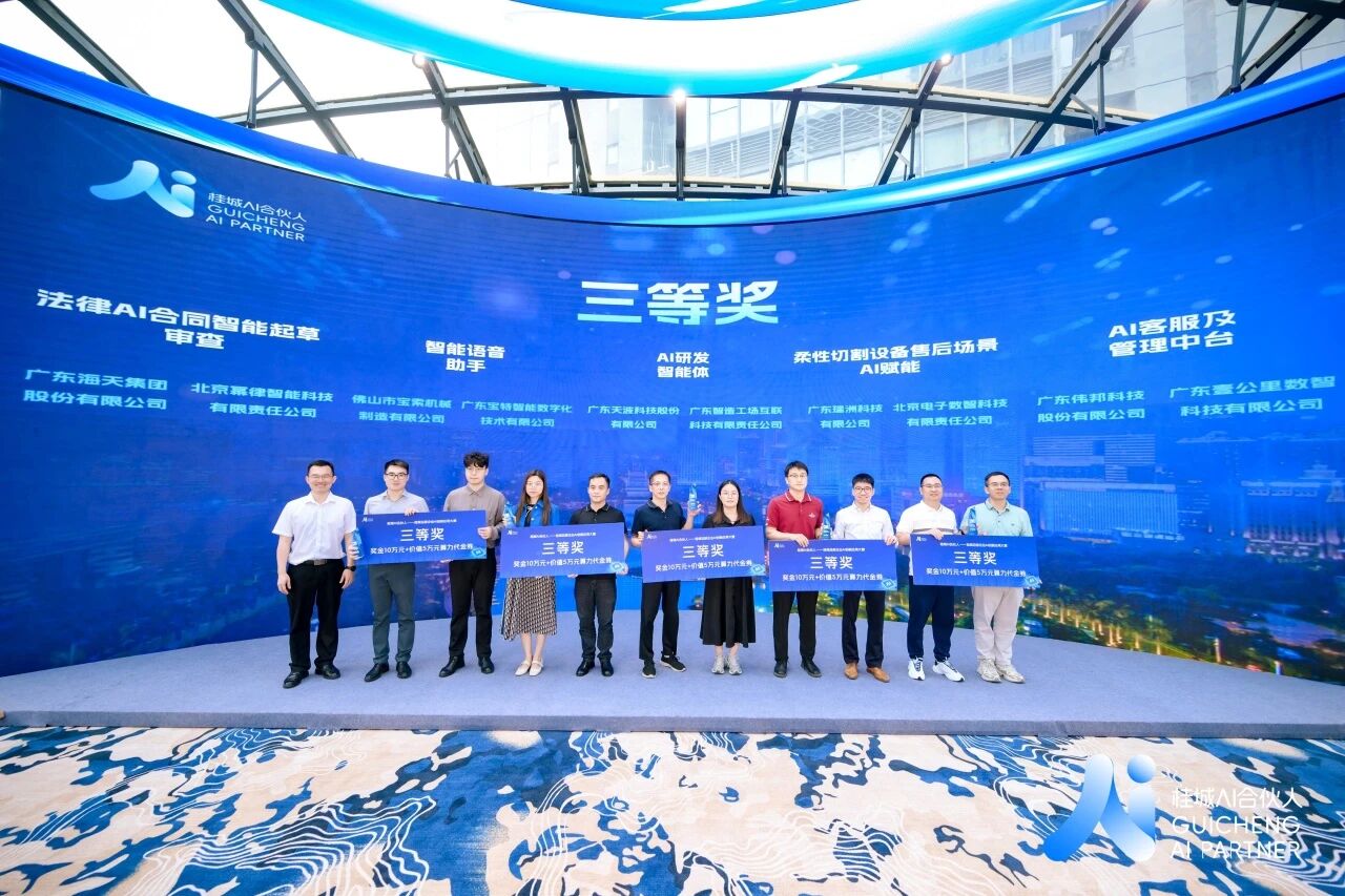 本次大赛是佛山首个、广东地级市首个千亿街道桂城,立足总部企业集聚优势打造的重要创新平台,以“以赛促创、以赛促产”为核心模式,推动总部企业与AI服务商结对共建,打造可复制、可推广的AI应用场景,持续打响“桂城AI合伙人”品牌,助力企业智能化升级,构建区域AI产业生态新高地。大赛自2025年10月底启动后,多家桂城总部企业与AI服务商完成签约,并进入五个月陪跑赋能阶段,围绕真实业务场景开发落地应用、培育复合型AI人才,最终8支优秀团队脱颖而出晋级决赛。 决赛路演现场,8个AI项目精准聚焦企业核心痛点,覆盖研发、生产、财务、售后、客服、营销、管理等多元场景。项目成果亮眼:昭信集团与广东制造创新中心、百度飞桨推动AI创新实验室落地,实现研发单场景效率提升300%,财务效率提升90%;天波科技联合智造工场,用AI研发智能体实现产品降本30%以上、缺陷率下降90%以上;海天集团结合自身情况与幂律科技AI产品融合,法律起草、审查效率提高超50%,审查风险点准确性超80%;宝索机械通过部署智能语音助手,让生产报工查询从5分钟缩至15秒;瑞洲科技与北电数智联合打造AI售后运维体系,使人效提升100%-140%;柯内特与讯飞星火大模型全模态数据融合,运维成本降低40%以上;伟邦科技与壹公里科技构建AI问数与AI开发助手两大核心应用,实现数据洞察与脚本生成的全流程智能化;景兴实业与金赋科技用AI智销助手,解决数据滞后痛点,全面提升决策效率。 经过专业评审团的严格评审与现场激烈角逐,大赛依次揭晓一、二、三等奖获奖名单,现场掌声热烈,荣誉加冕。颁奖环节后,一、二等奖项目代表依次登台进行成果分享,全面展现AI技术在企业实际运营中的创新突破与落地价值,分享可复制的实践经验,为现场企业带来极具参考价值的AI转型启示。 本次大赛由佛山市工业和信息化局、佛山市政务服务和数据管理局指导,南海区经济促进局、南海区政务服务和数据管理局、共青团佛山市南海区委员会、桂城街道办事处联合主办,广东省中小企业发展促进会、北京电子数智科技承办。 大赛的成功举办,不仅集中展示了桂城企业AI创新应用的标杆成果,更以赛事为纽带深化供需对接、加速场景落地,为桂城培育新质生产力、推动产业高质量发展注入强劲智能动能。广东省中小企业发展促进会作为大赛承办单位之一,未来将助力企业加速落地优质AI应用成果,赋能智能化升级与AI产业生态建设。 获奖名单