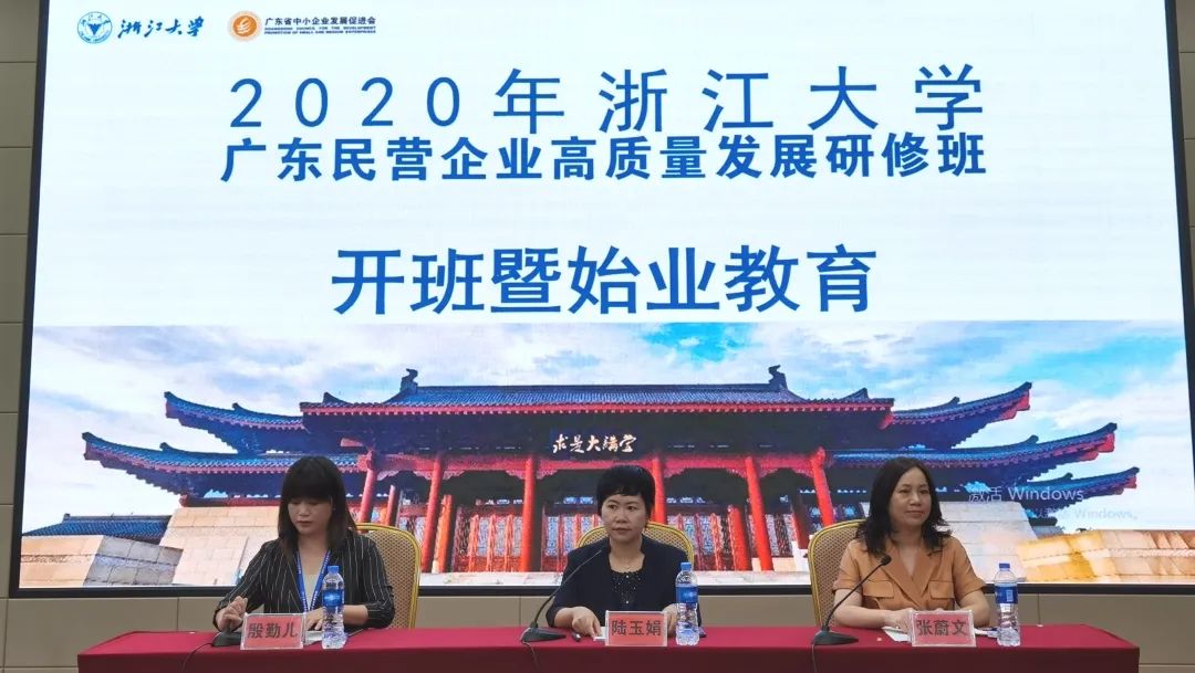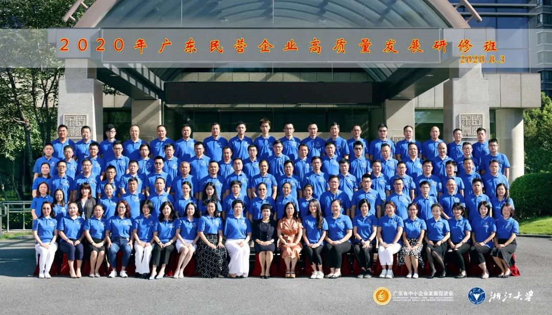8月3日,2020年广东民营企业高质量发展(浙江大学)研修班正式开班,87位来自广东民营企业的学员在浙江大学进行一周的学习。 本期课程由广东省中小企业发展促进会主办,结合广东未来发展趋势和广东民营企业的发展需求,深入浙江大学与标杆企业学习,把握当前实体经济与数字经济融合发展的最新趋势,抓住未来“机会窗口”。 开学典礼 授班旗 戴校徽 广东省中小企业发展促进会秘书长陆玉娟、浙江大学公共管理学院副院长张蔚文等领导出席了开学典礼,并进行了简单而庄严的授班旗、戴校徽等仪式。 陆玉娟秘书长在讲话中表示,当今以新产业、新产品和新商业模式为代表的新动能逆势增长,本次课程聚焦新零售、数字经济与信息化,旨在帮助学员企业的发展注入新动力、开辟新路径,牢牢掌握创新发展主动权。 张蔚文副院长代表浙江大学对大家表示热烈的欢迎,希望可以通过本次培训,为企业发展提供智慧源泉,凭借浙江大学雄厚的师资力量和教学资源为企业家们带来收获。 本期研修班将通过五大模块创新的课程形式,从宏观形势到政策分析、从产业机遇到企业管理等方面提供全面的研习。同时,加入“海康威视”入企培训、“广东企业新营销实操难点”主题研讨等创新的形式,为企业家拓宽视野,实现多方位的提升。 在新时代背景下,通过研修班帮助企业家及企业高管理解产业形势,助力广东民营企业整合创新资源,加快新旧发展动能接续转换,推动广东中小企业高质量发展。