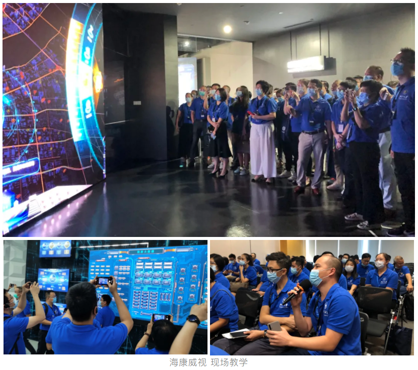 本期研修班由广东省中小企业发展促进会主办,依托浙江大学名校资源,集合了陈印昌、楼迎军、潘亦藩、陈德人、孙怡夏、华斌、陆敏等知名教授及专家学者作为主要师资,授课内涵丰富、全面详实,既有专业“高度”,又有实践“深度”。 其中包括两次现场教学,分别走进了海康威视与5G直播产业园,围绕数字化转型的机会与未来,组织企业深度学习。 海康威视是以视频为核心的智能物联网解决方案提供商和大数据服务提供商,如今已成为全球最大的监控产品供应商、全球安防 “智造” 的领头者。 学员们一边聆听工作人员的解说,一边参观了海康威视智慧安防体验馆,仿佛穿越时光隧道,来到了一座科技赋能的智慧城市,在科技助力下体验未来生活。在随后的交流会上,学员们纷纷提出了关于不同领域的应用与隐私安全等问题,与海康威视工作人员进行了深入的交流。