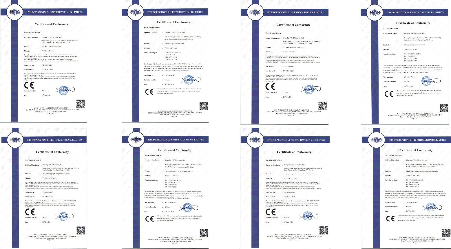 公司主要产品均通过3C、CE、UL、ROHS认证,部分电机通过配套客户机械产品间接出口欧、美等20多个国家。公司拥有多项实用新型专利,现已被评为“国家级高新技术企业”,“专精特新中小企业”并取得“高新技术产品”和“肇庆市分马力电机工程中心”。