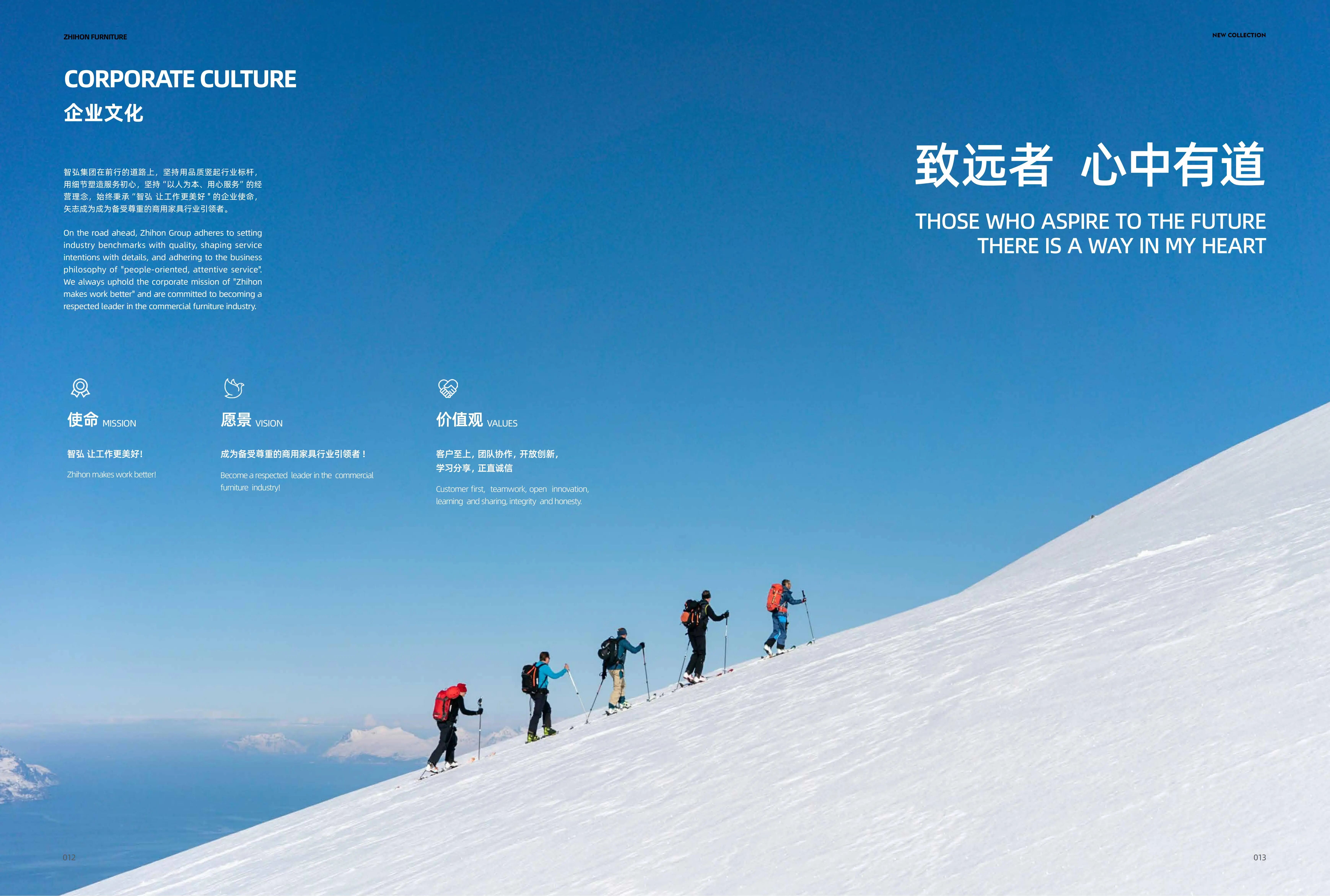 智弘集团企业文化理念 使命:智弘 让工作更美好 愿景:成为备受尊重的商用家具行业引领者 价值观:客户至上、团队协作、开放创新、学习分享、正直诚信。