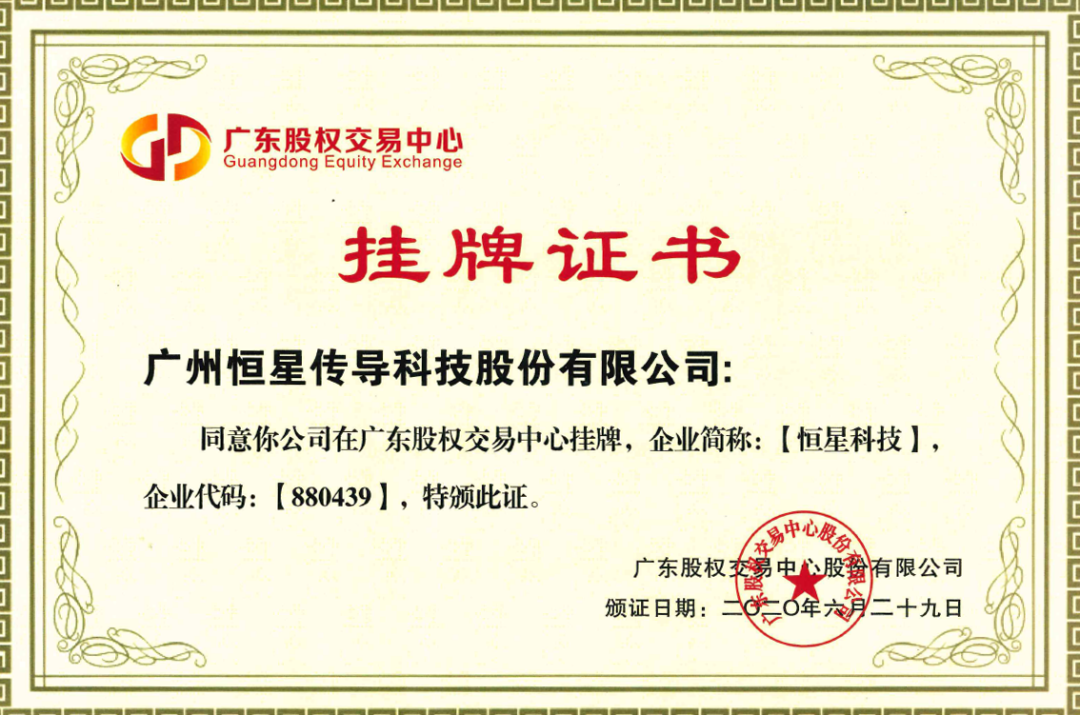 编者按:省促进会集聚了超过500家优秀民营企业,其中包括超200家制造业行业龙头、隐形冠军,超100家上市和新三板挂牌公司。近日,会员单位广州恒星传导科技股份有限公司(简称“恒星科技”)在广东股权交易中心成功挂牌,详情转载如下:
