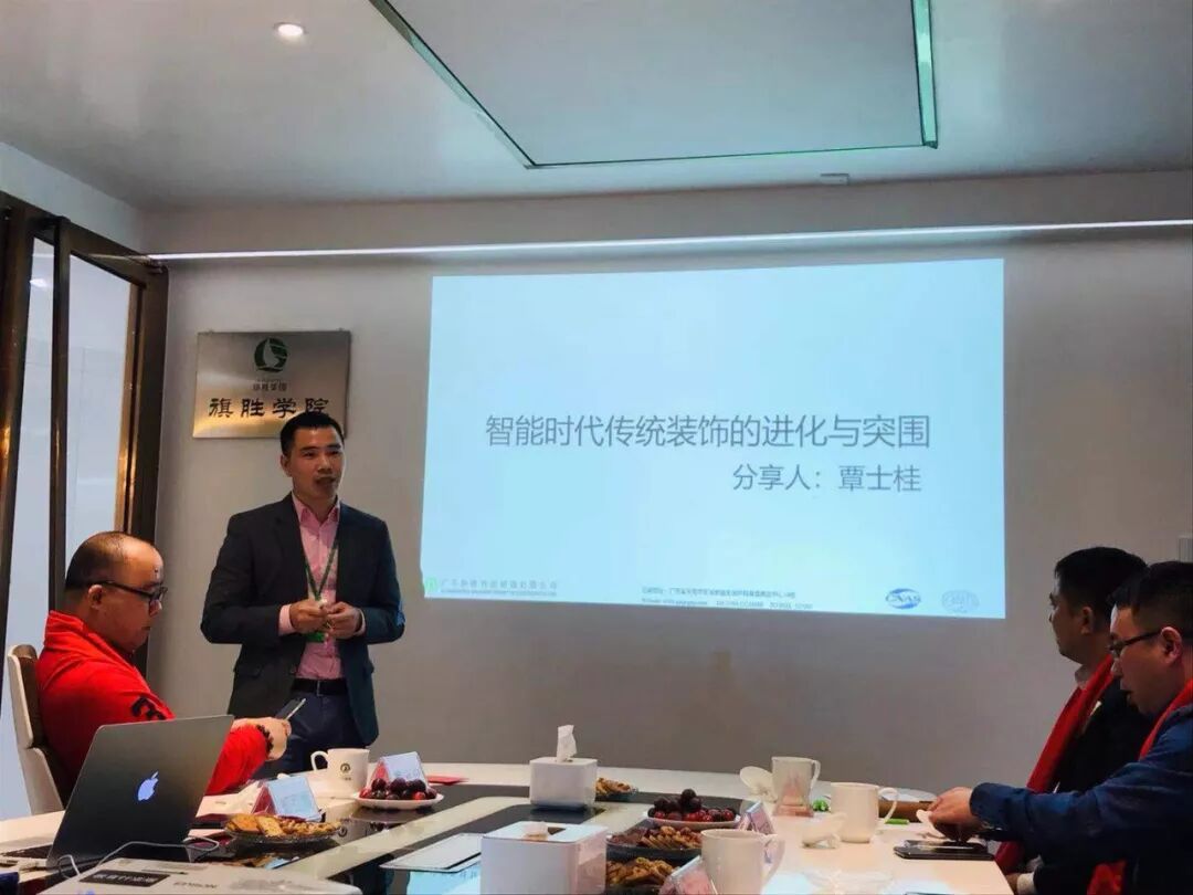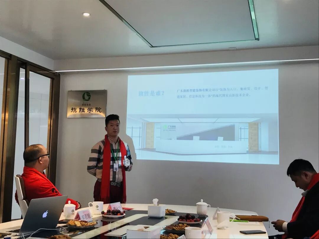 在东莞,东道主广东旗胜智能装饰有限公司,覃士桂副总裁和大家讲述了企业的发展历程。随后,运营总监郑百顺以主题《智能时代对传统装饰工程的颠覆与进化》分享了企业的进化之道。智能时代的到来,扩大了装饰行业的服务及未来,其一大特点就是以大数据为基础、以网络协同和数据智能为核心的个性化服务,颠覆“脏乱差”的行业传统印象。