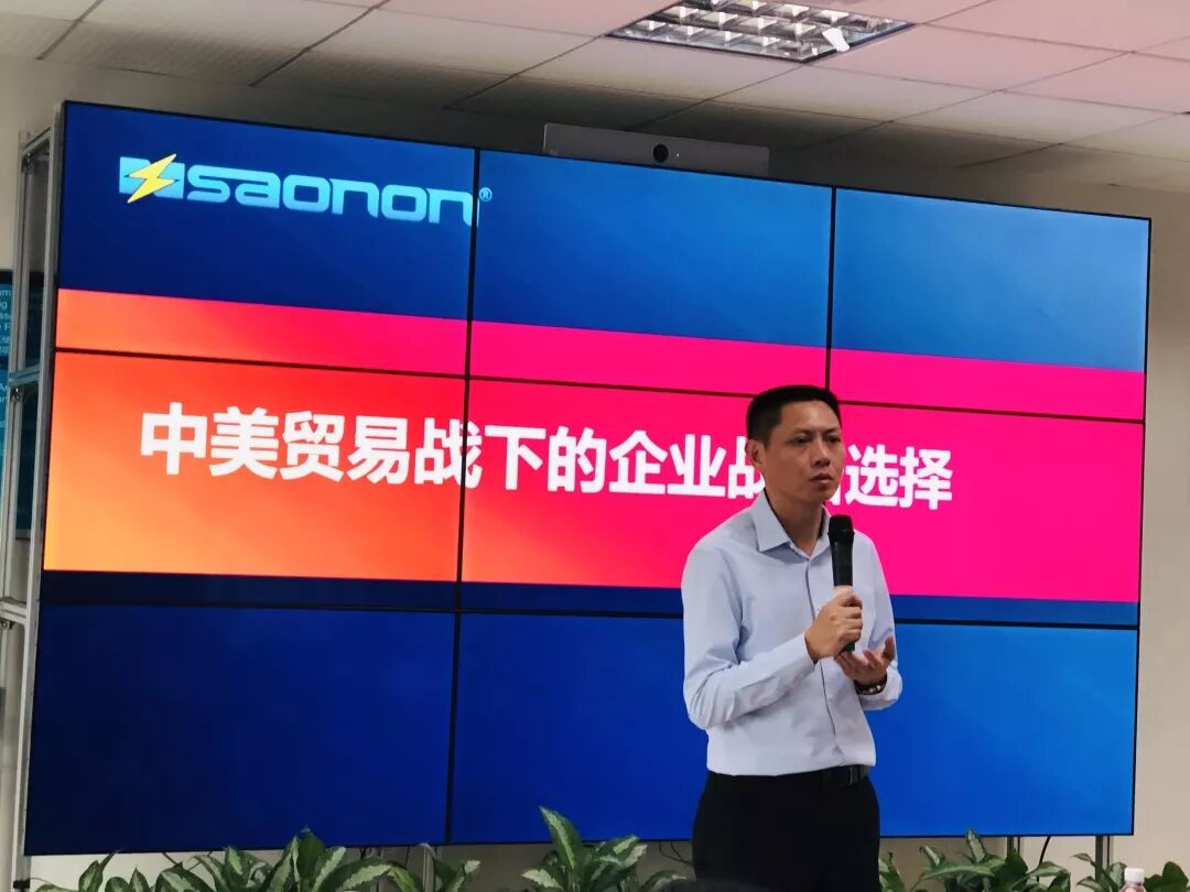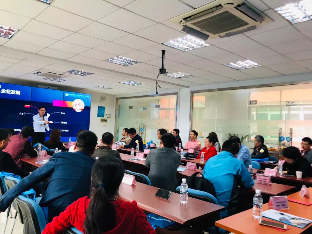 在广州,我们的东道主是广东超能投资集团有限公司,邵剑梁总经理以主题《中美贸易战下的企业战略选择》为大家分享了超能的转型战略。邵总从大环境状态、企业发展、战略选择、企业铁三角四大方面和大家作了深入的交流。