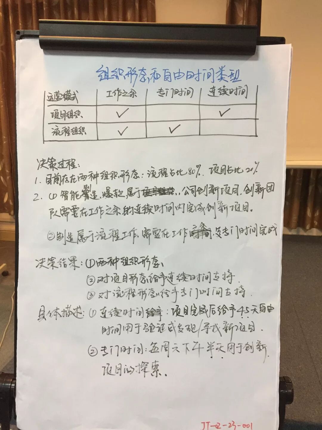 广东制造转型升级实战工作坊 第九次辅导 新年的喜庆热情还在,周末的寒冷算得了什么?大家带着饱满的精神来到了佛山顺德的胜业电气股份有限公司,开始了广东制造转型升级实战工作坊第九次辅导的学习! 在2月23-24日,两天的学习里,郝博士首先和大家回顾了打造创新型组织的组织设计,创新战略和架构都是必不可少的要素。在本次课程里,郝博士和大家深入阐述了创新机制,还有赋能平台的三大要素。企业也在课堂实践中不断得到深入的解构与再现。 郝聚民博士 创新机制 创新需要一个好的机制保障,在一些僵硬的组织和机制下,创新是无法实现的。因为创新需要打破、改变旧有的东西。而一个僵硬的机制下,改变是风险,是一种制造不稳定,制造危机,制造动荡的行为。究竟怎样的机制才能让创新产生? 郝博士从时间、人事、薪酬、评价考核、激励、股权等方面进行了分析,以海尔为例,一方面赋予每个人一片独立创新的天地,可以最大限度地激发员工的潜能、创造性和积极性,实现了员工创新空间和自我价值实现的最大化,是一种真正的本能管理模式;另一方面,每个人都是一个市场,每个人又直接面对一个市场,每个人的报酬与他的市场订单直接挂钩,按效分配,体现了分配的公平性。 专心致志的课堂 课堂上,各家企业也从自身出发进行了探讨。有两点在创新机制设计中是非常必要的,一是如何驱动这个生态圈运转,一是如何保障这个生态圈不长出杂草。要驱动一个机制体系运作,靠一直输血是不能解决问题的,必须要让这个生态群内的各个单元都有可自运转才行。 企业在现场展示了各自的决策过程,并进行分享,郝博士的点评为企业通络,现学现用,使其可以落实于企业。 现场交流 赋能平台 创新型组织的第二大领域就是赋能平台,企业的赋能可以是由内而外的。一开始是从内部对员工、对小组赋能,然后为合伙伙伴赋能。甚至是为行业赋能,比如淘宝平台。而赋能主要包括产业资源、资金、专家库三要素。 为创业创新团队提供产业资源支持,有三个选项,分别是临时整合、内部封装、生态封装。根据不同的决策,选择最适合自身企业的模式,产业资源的数字化和封装能力,决定了给予产业资源创新的难易度和成效。 企业分享分析 创新项目投资方面需要采用适合的资金来源方式和管理模式。启动资金有两种情况,一种是不折股权的模式,采用科研立项模式,实报实销,一种是折成股权的模式,参照社会化的风险投资。资金管理则可选择由集中或分散的风投委员会管理。 专家库则是为了给创业创新团队对接最强大脑,在创新领域、技术领域、运营领域帮助集中训练,并参与评估决策。 工作坊注重实践,课堂理论学习只是其中一部分,企业通过现场的研讨,在郝博士的点评后更能知道优势与不足,从而在企业落地实践,把课堂的内容切切实实地运用。 郝博士点评 企业创新始终需要回到市场的需求和自身的特长。在擅长的行业中是不是能够换一种做法来抓住更强的需求?创新对一个企业来讲是方方面面的,在新时代背景下,企业想要在激烈的竞争中生存和发展,必须根据市场环境变化来适时调整自身的管理模式。 根据商业环境和社会环境变化,采用新的管理思维、运用新的管理技术和管理方法、制定新的企业管理机制,并以此创造出一种更为高效的生产要素和生产条件组合。这就是帮助企业可以在工作坊的课堂实践里一步步应用到真实的商业场景。 2019年的首次工作坊辅导暂到这里啦,敬请期待下一次的课堂实践! 广东制造转型升级实战工作坊首创企业主+高管“1+7”、18个月深度陪伴模式。以制造业转型升级最常见的问题为抓手,立足实战;以新战略、新管理、新团队共同打造组织执行力,驱动业绩高增长! 报名咨询:薛飞 13543430261